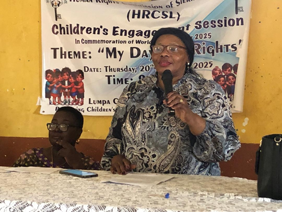 Chairperson of HRCSL, Mrs. Patricia Narsu Ndanema spoke about the national laws and international instruments put in place to protect the rights of children, including the Child Rights Act and the International Convention on the Rights of the Child.
