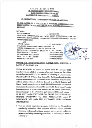The High Court of Sierra Leone has granted an interim injunction in favour of local businessman and technology entrepreneur David Kpakima in a commercial dispute involving his foreign business partner, Davar Fazaeli.